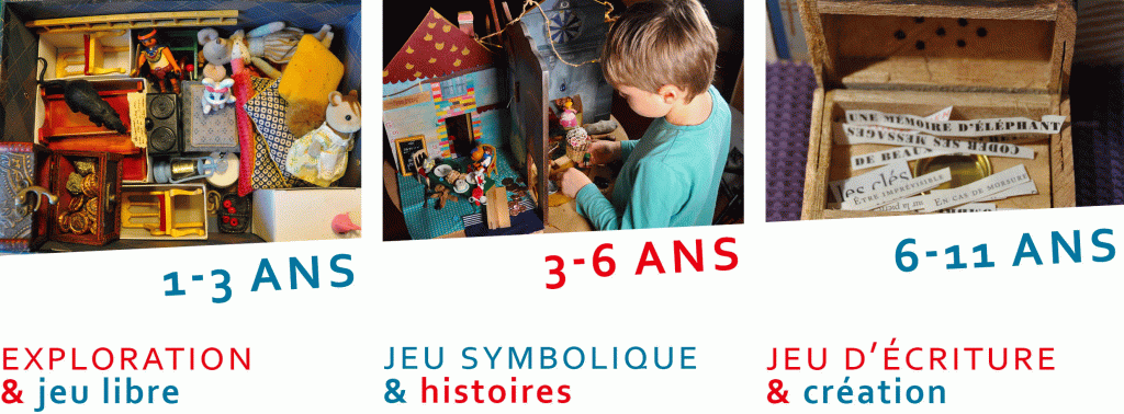 Les enfants développent leur capacité d’attention : jeu avec les personnages, exploration autour d’un objet fétiche, construction, destruction, répétition d’un geste (allumer et éteindre les lumières, observer avec une loupe), quête d’une mission (cacher le trésor, garder les portes fermées)… Les enfants se laissent guider par leur curiosité et découvrent le vaste Monde des histoires.