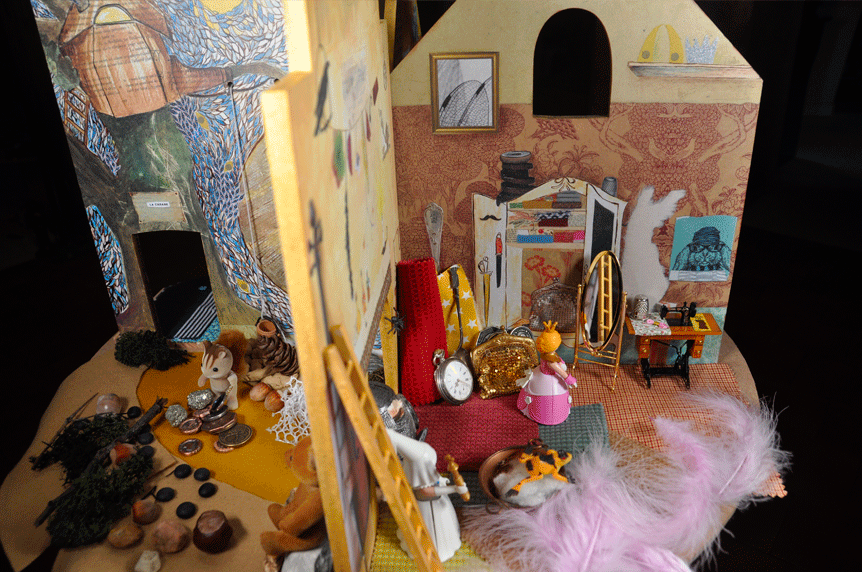 – des ateliers de création spontanée – mise en scène, aménagement du décor, fabrication, illustration, écriture, narration.