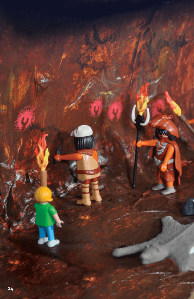 Toute l’année, les enfants inventent les aventures de Mona, petite fille qui voyage à travers le temps. Séances d’écritures avec Béatrice Robert, la maîtresse. En atelier, avec Carole, création des décors. Enfin, les enfants mettent en scène leur histoire avec décors, personnages et accessoires pour créer les photos qui serviront d’illustrations dans les pages de leur livre : L’Extraordinaire Voyage de Mona.