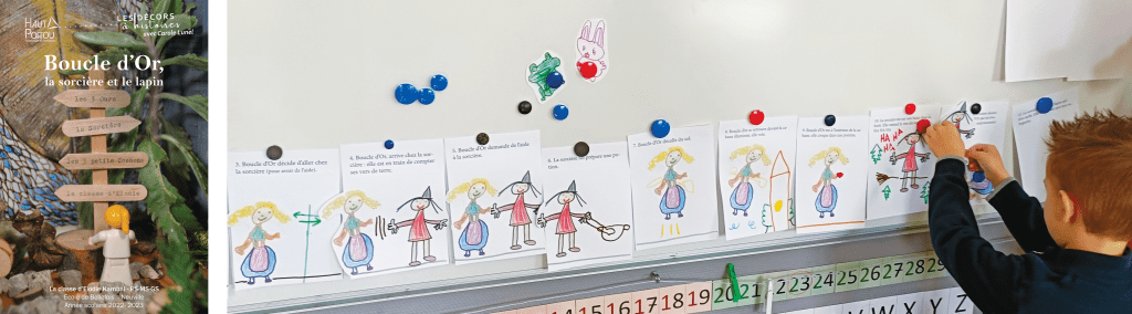 Les élèves de PS-MS et GS de la classe de Laurence inventent une histoire dans laquelle les deux enfants « e » de la classe vont entrer dans l’histoire !